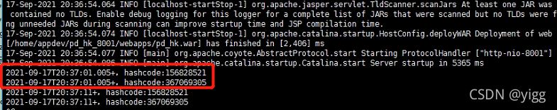 其实是两个项目(ROOT、pd_hk)同时在跑定时任务,并不是该项目启动二次,所有的项目都在webapps目录里面,root是其中的一个项目,http://localhost:8080/默认访问root项目,而如果要访问pd_hk项目需要如此访问http://localhost:8080/pd_hk/,二者都有定时任务的话,那么都会执行,所有才会在日志了看到打印了两个不同的对象。