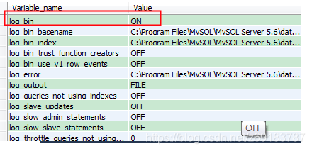 \bin>mysqld --install mysql --defaults-file="C:\Program Files\MySQL\MySQL Server 5.6\my.ini"8. 查看是否开启binlog