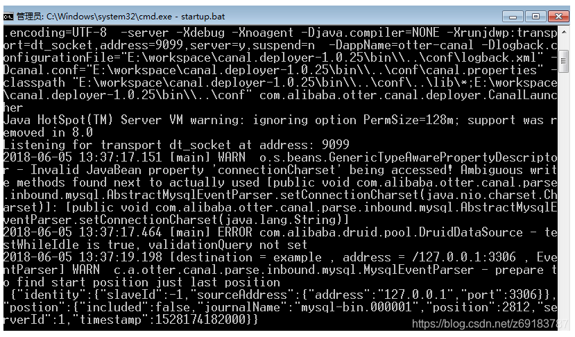 - 服务端:com.alibaba.otter.canal.parse.exception.CanalParseException: can't find start position for example