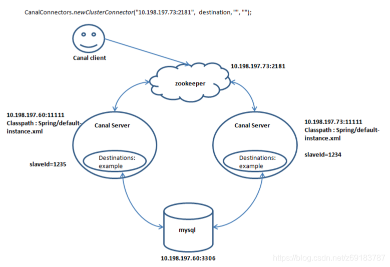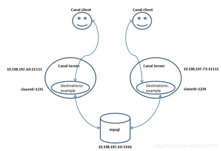 canal server: 为了减少对mysql dump的请求,不同server上的instance要求同一时间只能有一个处于running,其他的处于standby状态.