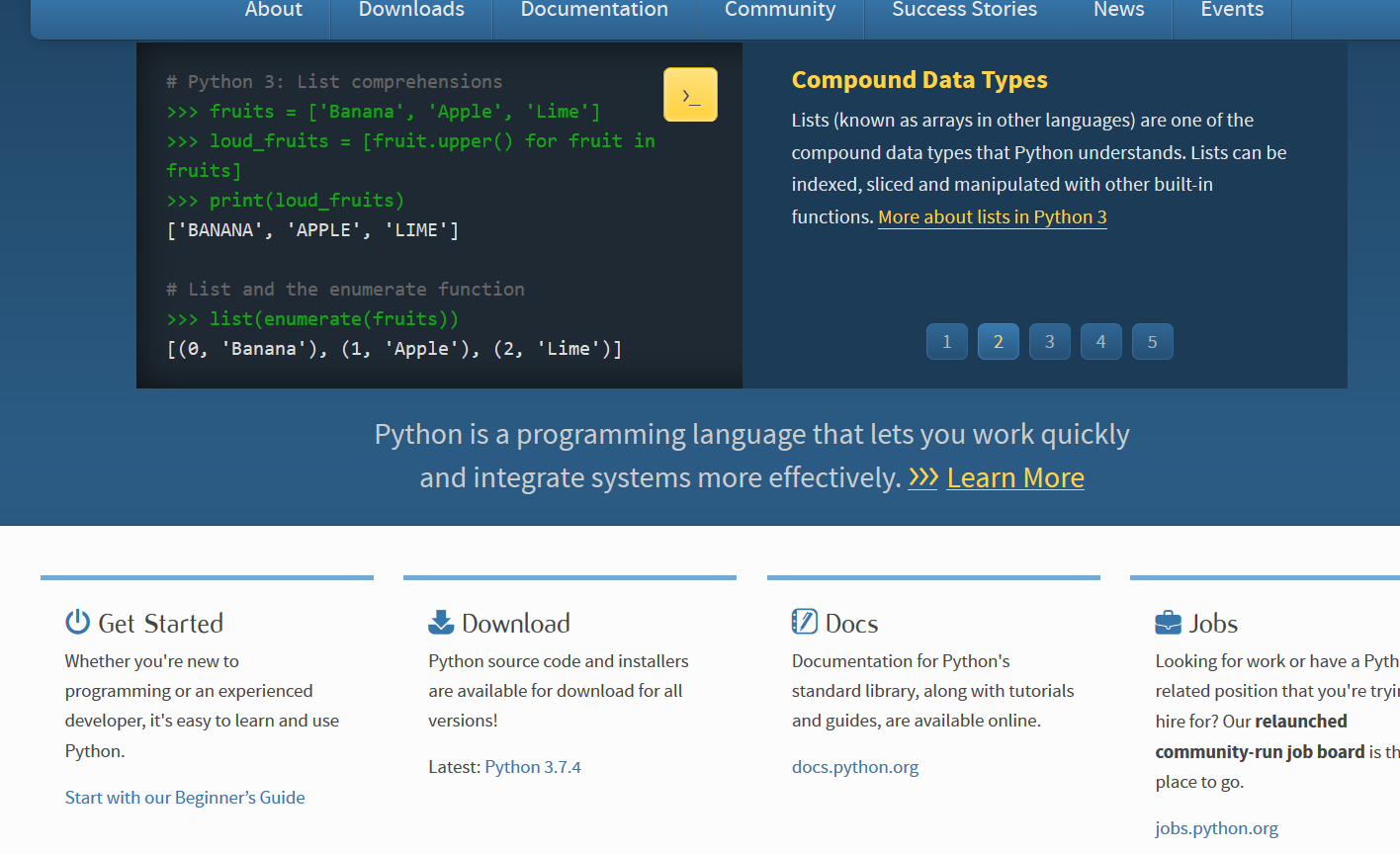 进入网址后再DownLoad下面有最新的python版本也可以选择其他版本下载在这里我选择的就是Python 3.7.4
