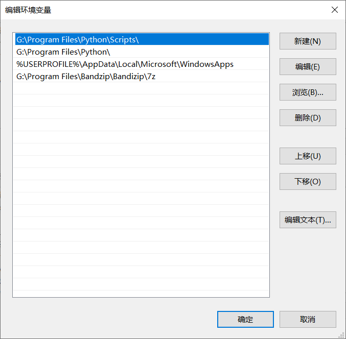 下载完成之后记住安装位置G:\Program Files\Python 之后复制G:\Program Files\Python\Scripts的路径到环境变量中查看系统环境变量和用户系统变量是否有,加入之后再cmd中输入python查看版本是3.7.4.