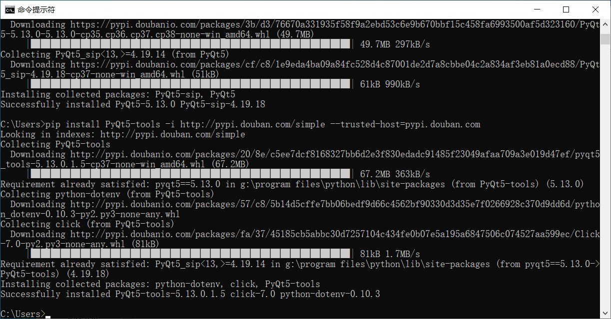 pip install PyQt5 -i https://pypi.douban.com/simple