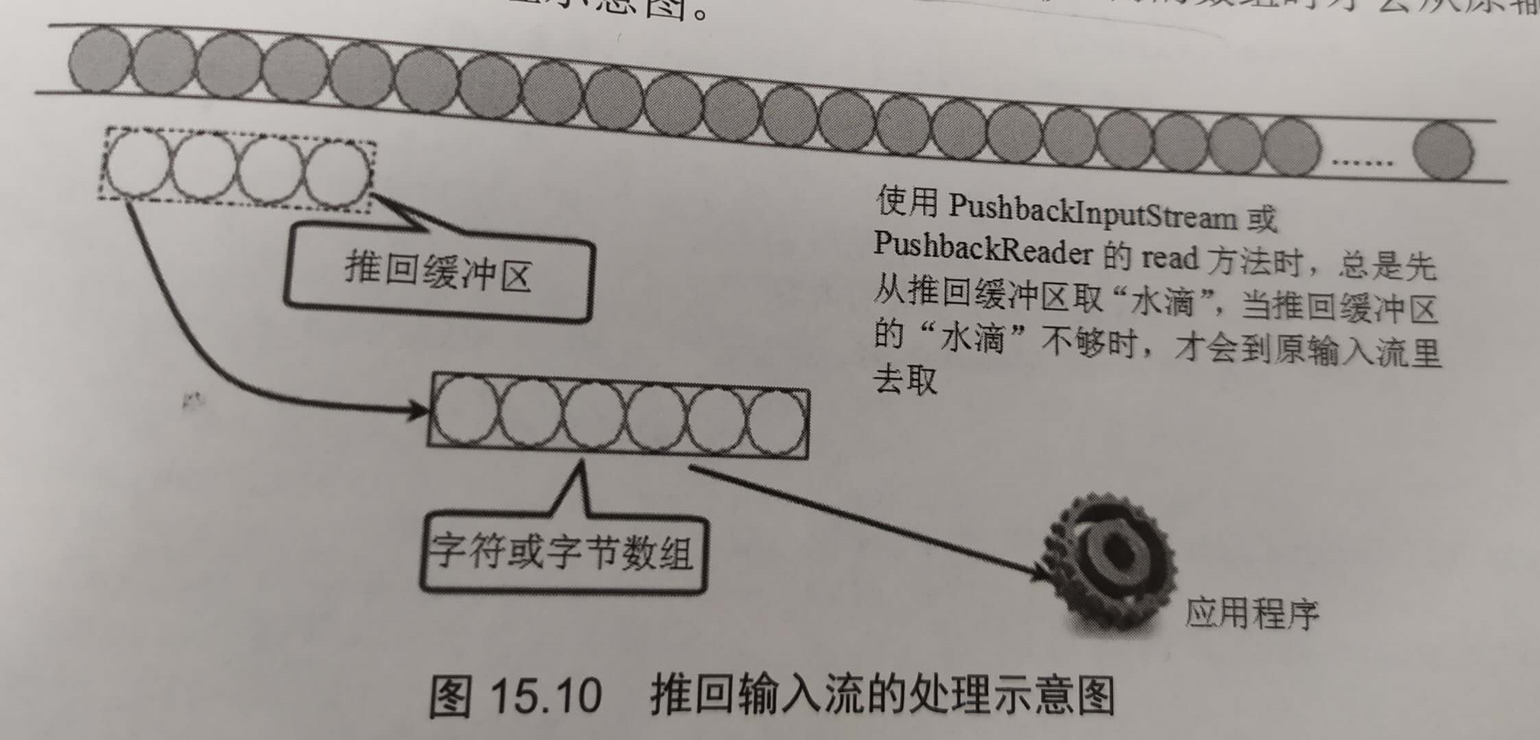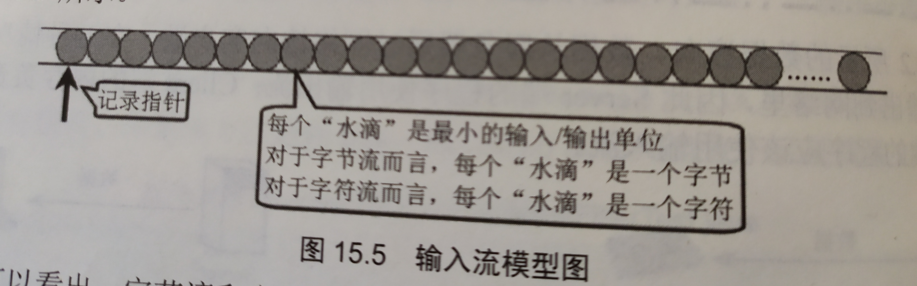 - 对于InputStream和Reader来说,它们把输入设备抽象成了一个“水管”,这个水管中的每个“水滴”依次排列,字符流和字节流处理方式类似,只是处理的单位不同,输入流使用隐式的记录指针表示当前正准备从哪个“水滴”还是读取,每当程序从InputStream和Reader里读取一个或多个“水滴”后,记录指针自动向后移动。同时提供一些方法来控制记录指针的移动。