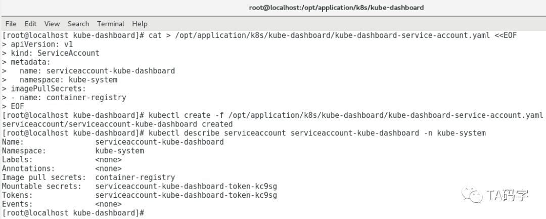 kubectl create -f /opt/application/k8s/kube-dashboard/kube-dashboard-service-account.yaml