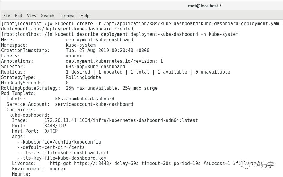 kubectl create -f /opt/application/k8s/kube-dashboard/kube-dashboard-deployment.yaml