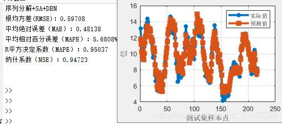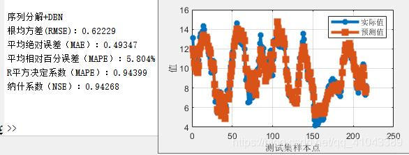 为了解决这个滞后问题,采用EMD经验模态分解先对序列进行分解得到IMF本征模态分量,然后对每个imf建立DBN预测模型,如图4所示。最后将各IMF对应的DBN的预测值相加,得到最终的预测结果,结果如图5所示: