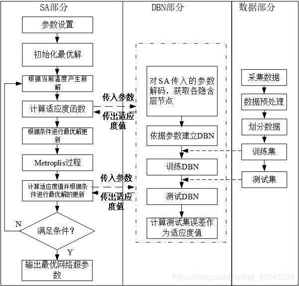 最后,为再一次提升精度,本文采用SA模拟退火算法对DBN的各隐含层节点数进行寻优,得到一个较优的网络结构,优化流程如图6所示,得到的结果如图7所示。