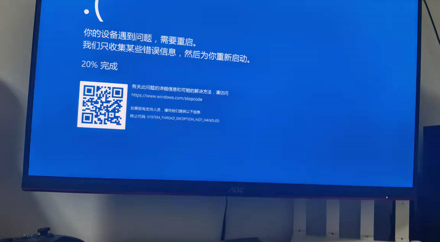 在换主板之前,一切正常使用,未有损坏过或者蓝屏过,在更换主板后,就一直出现进不去系统的问题,出现如下图的情况,报的错误是 SYSTEM_THREAD_EXCPTION_NOT_HANDLED,这里提示需要重启,然后重启后又会来到这个页面,无限循环。
