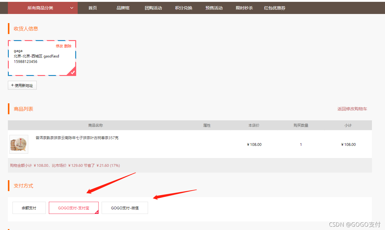 商城演示地址:http://mall.gogozhifu.com