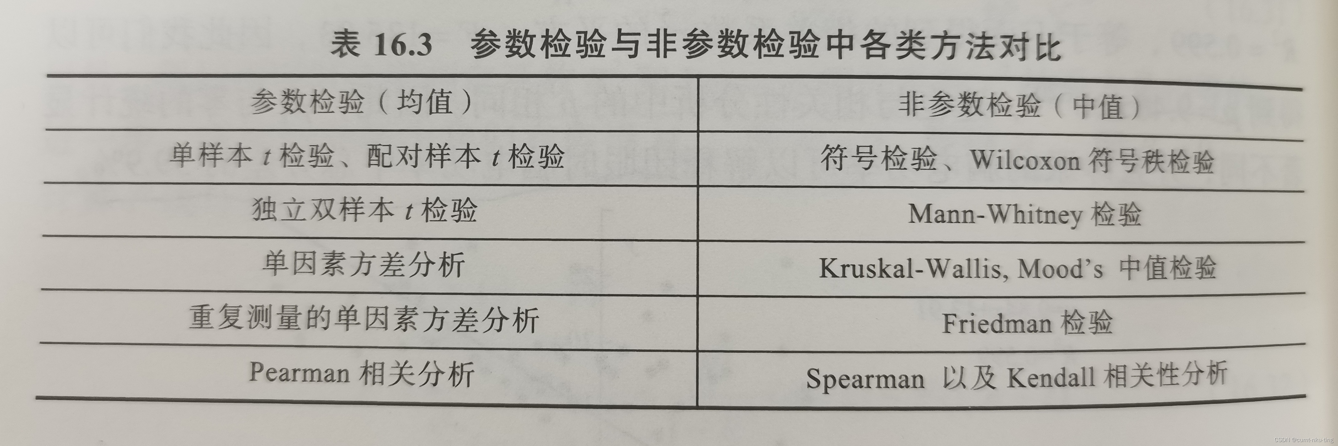 缺点 | 对数据要求严格,要求数据连续性、分布型已知和总体方差相等 | 若对符合参数检验条件的数据用非参数检验,则检验效率低于参数检验 |