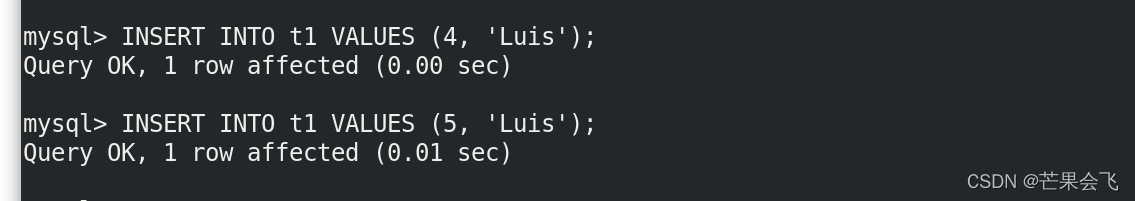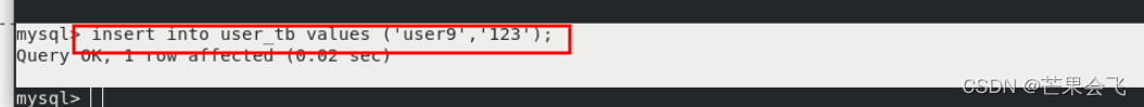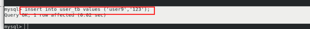 --> insert into user_tb values ('user3','123'); #给表插入信息