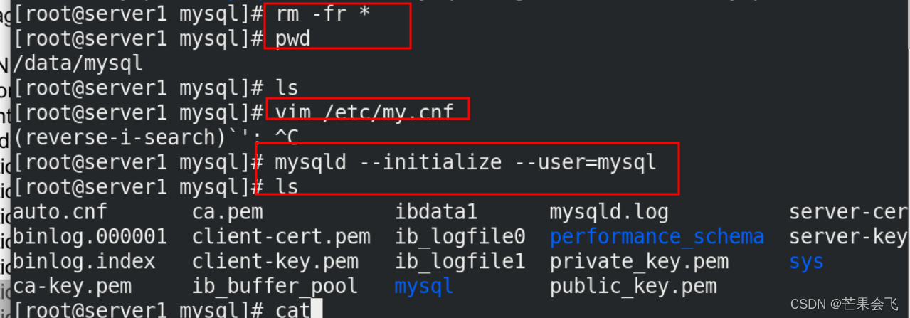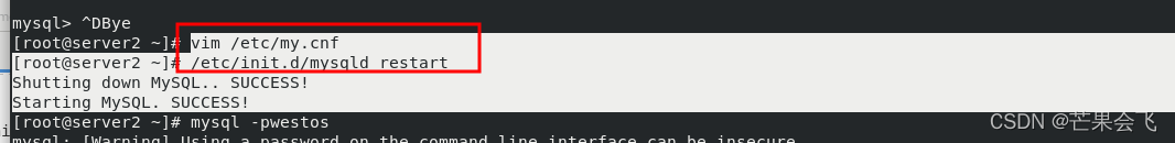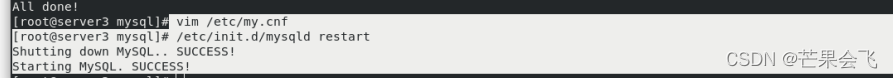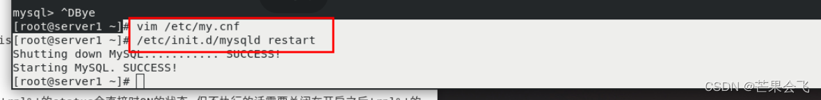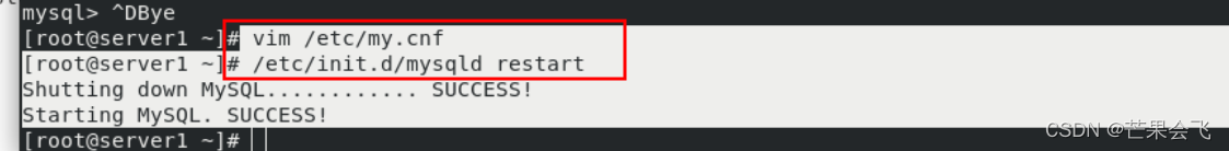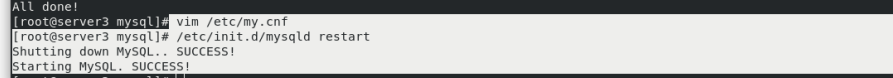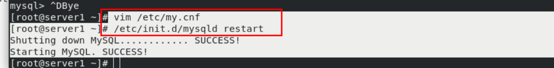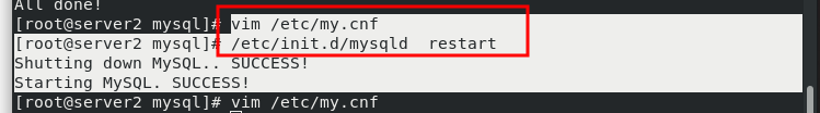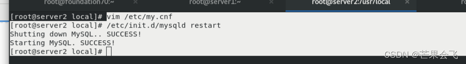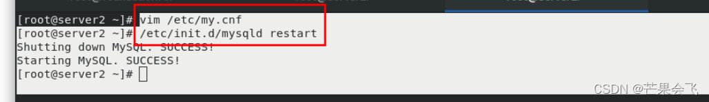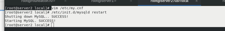 在server1和2主从关系搭建好之后:可以在server1主机中创建一个库,在server2查看同步消息