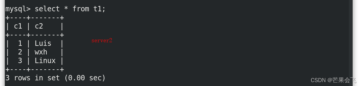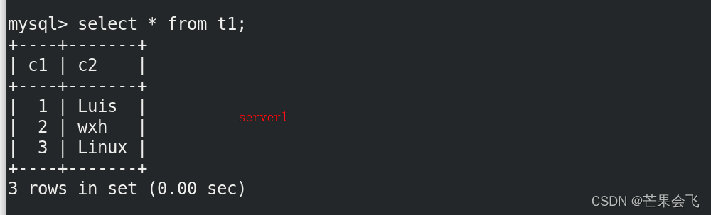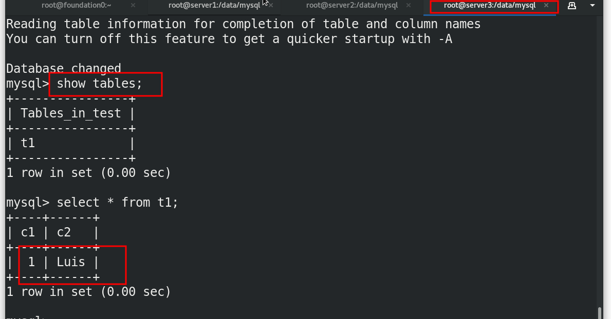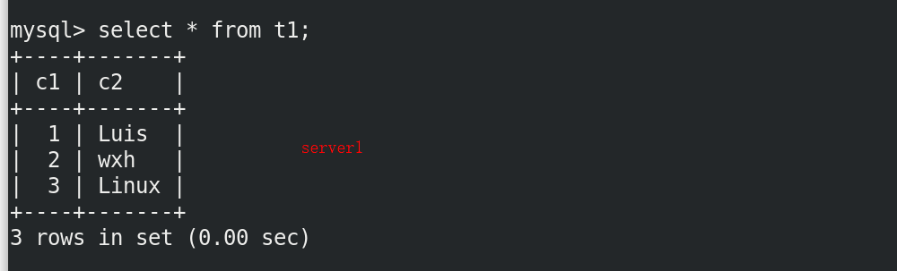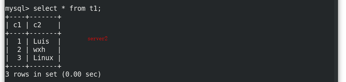 server3:开启server3之后还能同步到刚才关掉服务时server1写的表数据