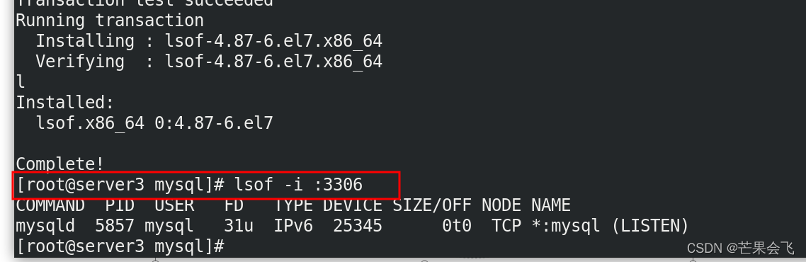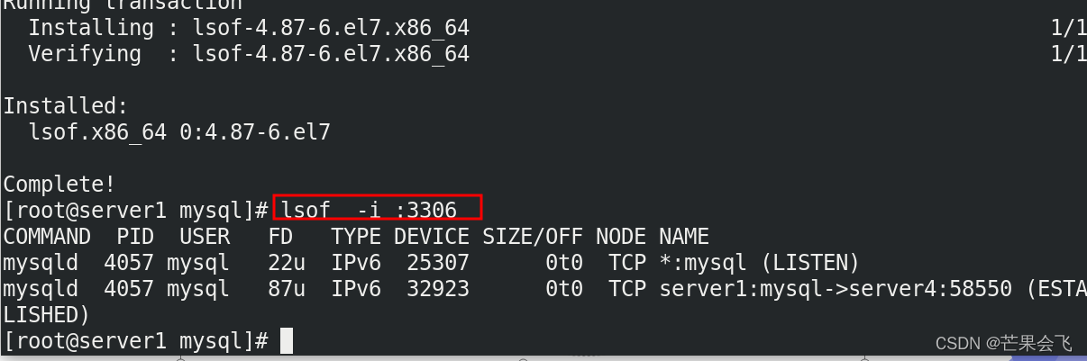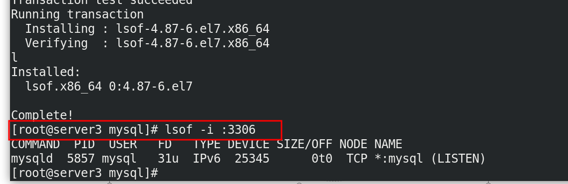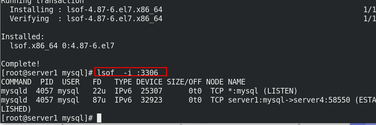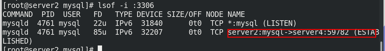lsof -i :3306 #查看mysql的端口号连接哪一台服务器