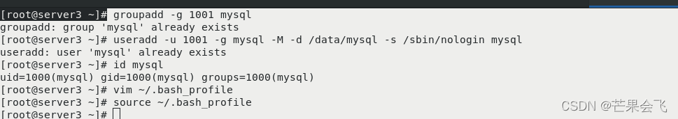 useradd -u 1001 -g mysql -M -d /data/mysql -s /sbin/nologin mysql