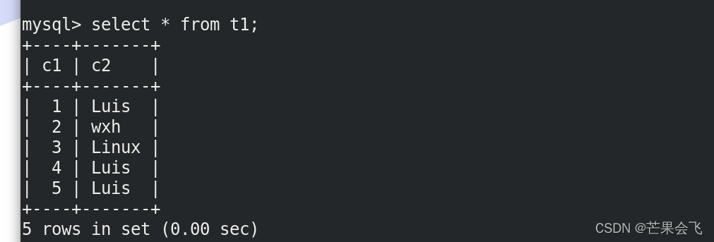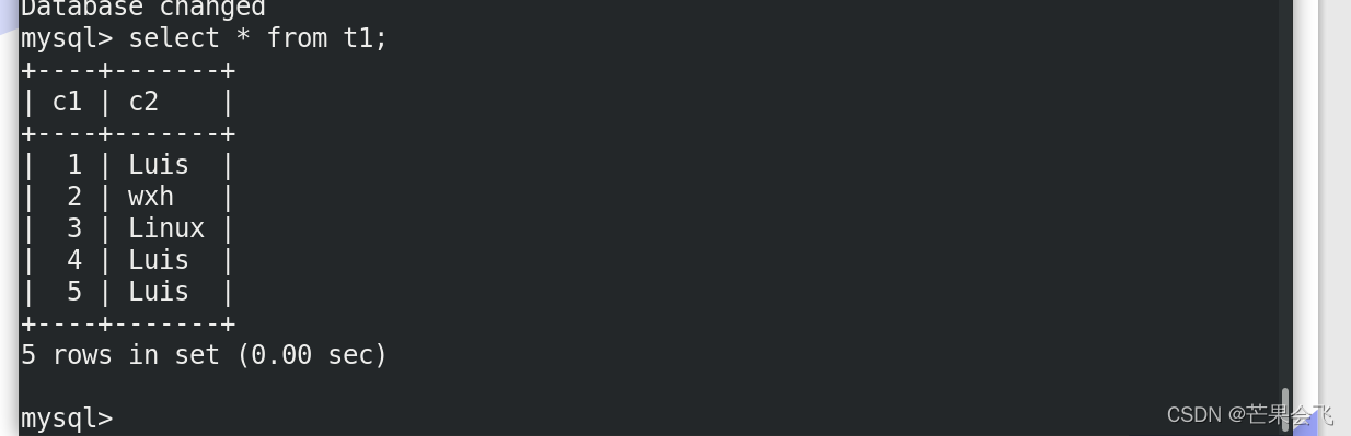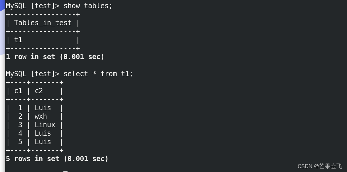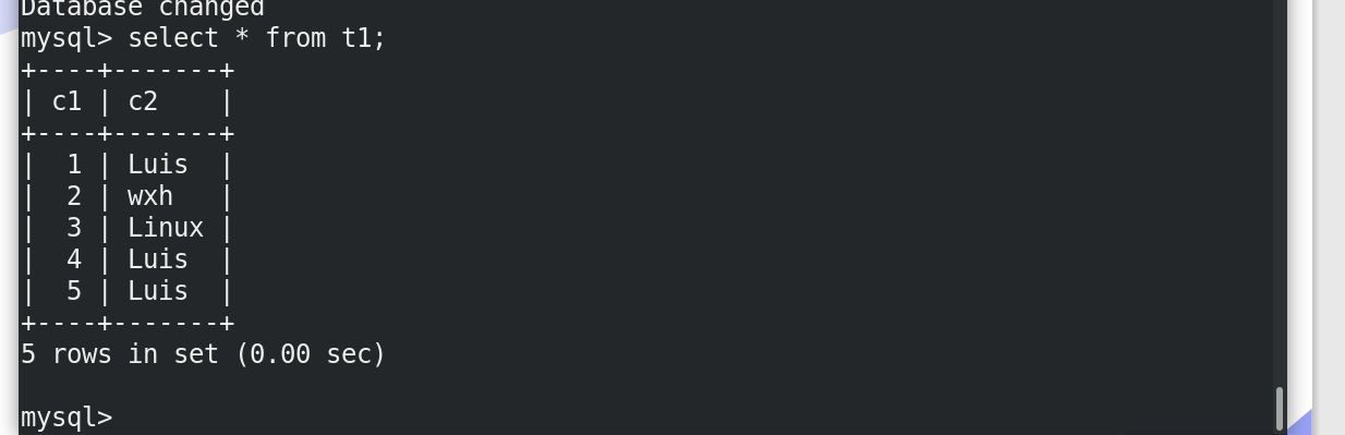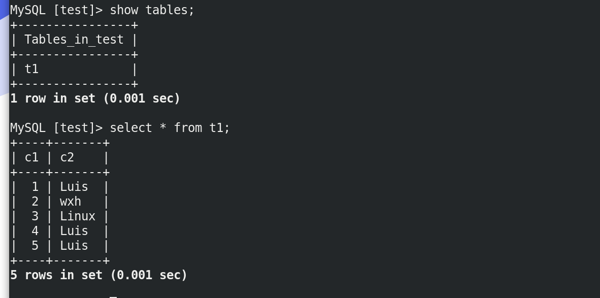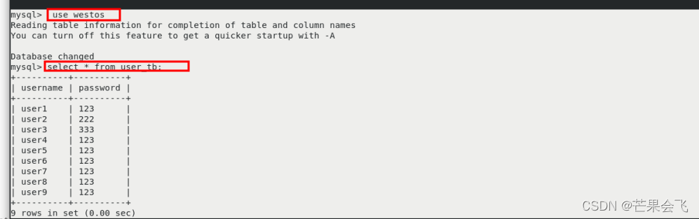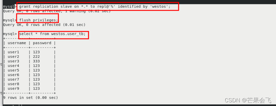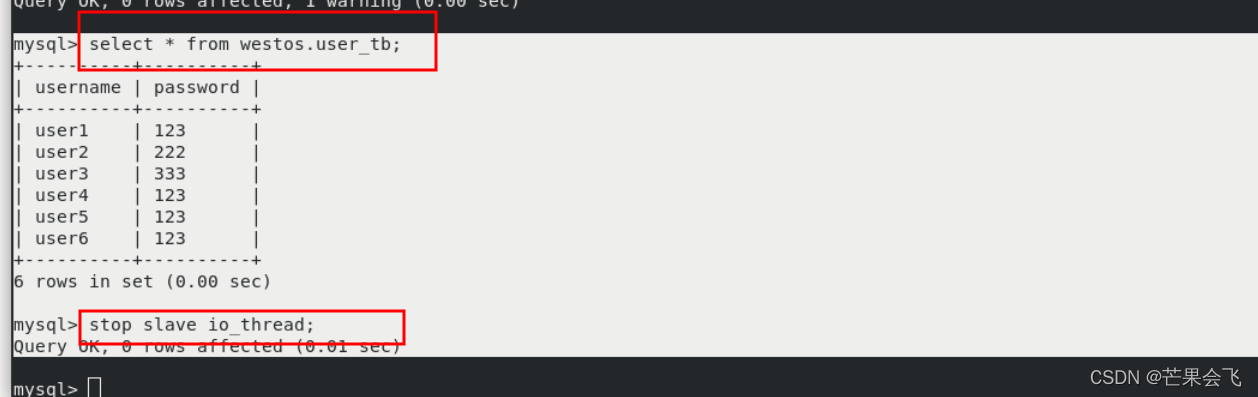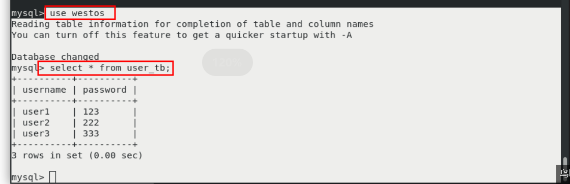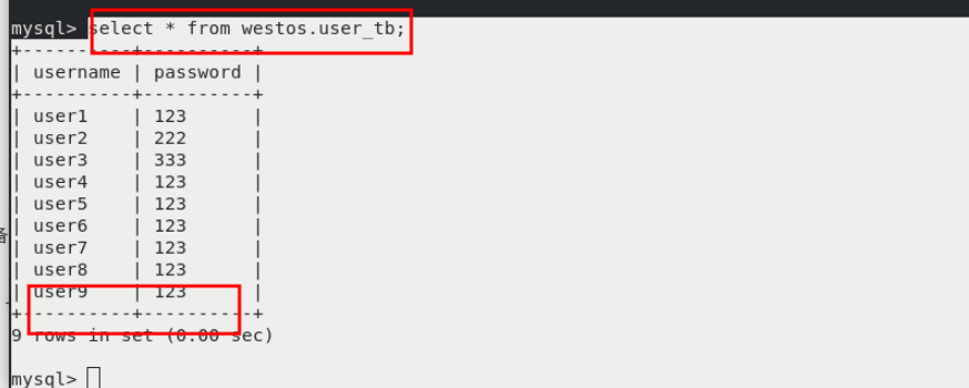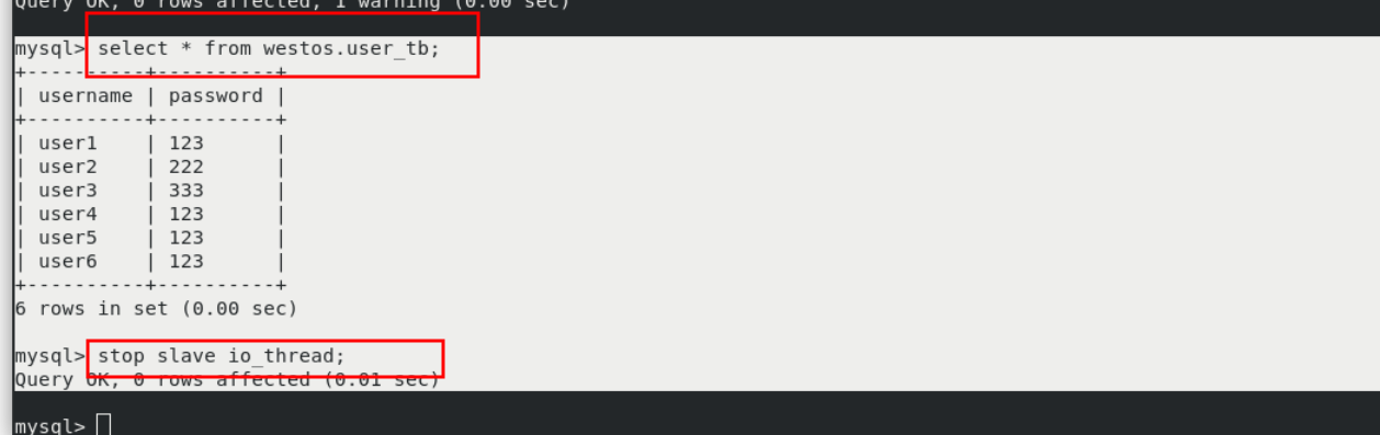 --> select * from westos.user_tb; #可以同步到刚才建立的表里信息
