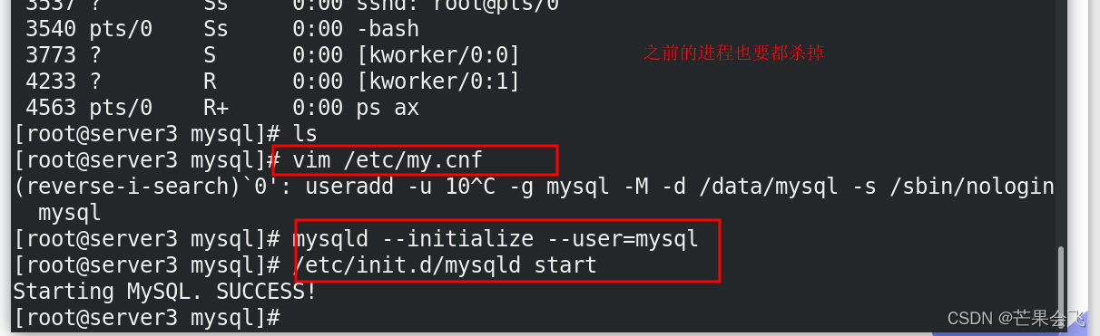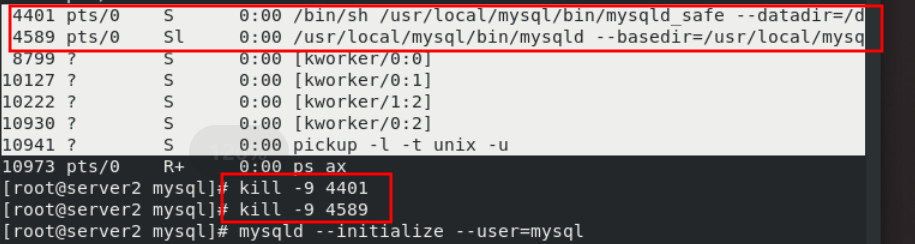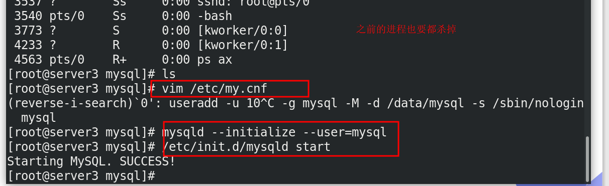 ps ax #一定要查看进程,kill掉之前的进程之后在初始化