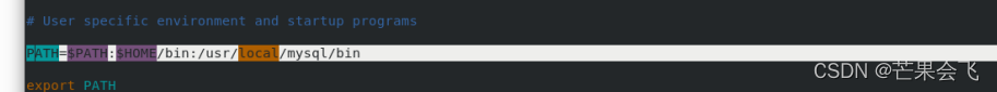 第10行:PATH=$PATH:$HOME/bin:/usr/local/mysql/bin