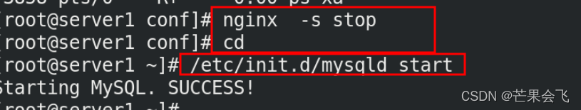 停掉nginx、开启mysqld、并且吧mysqld给server2传输过去