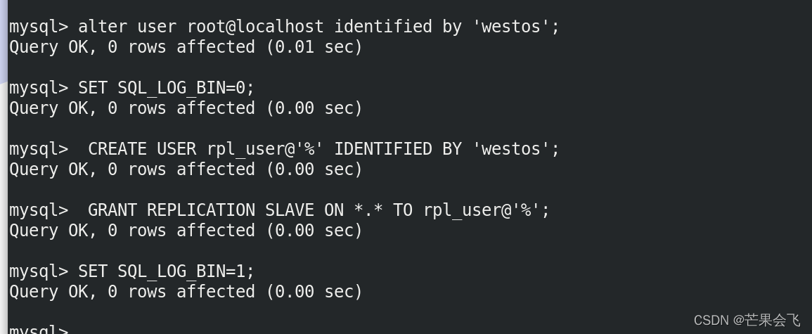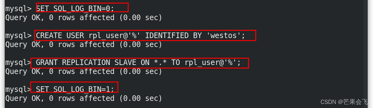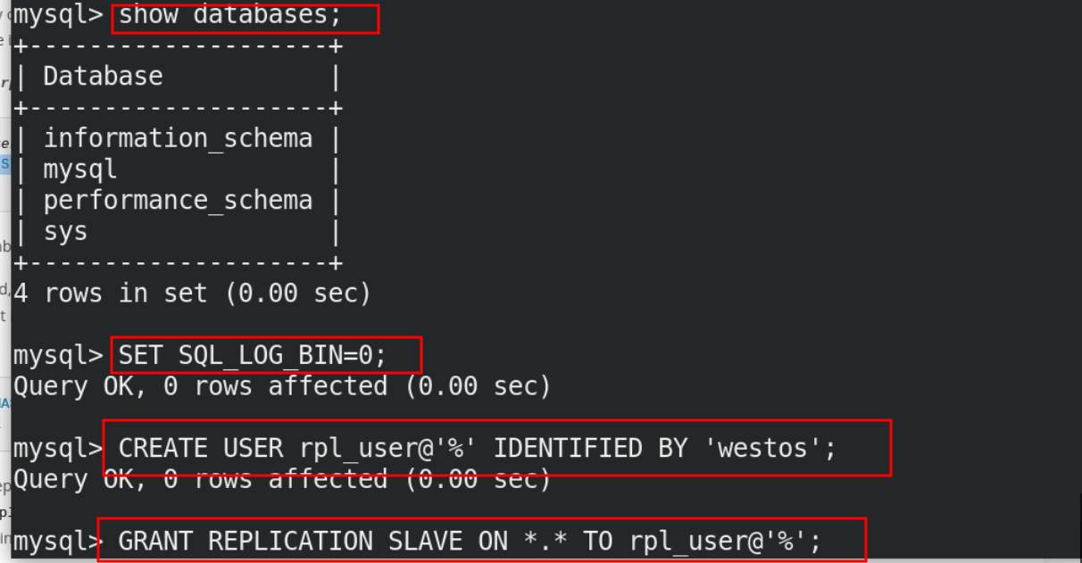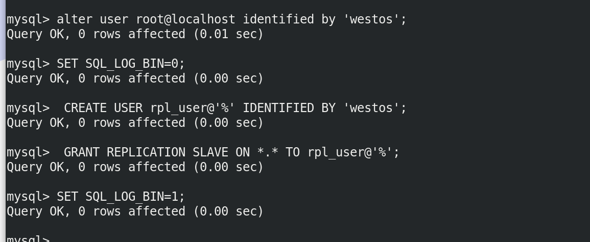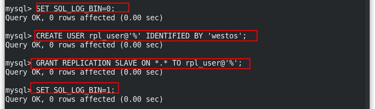 -->CREATE USER 'repl'@'%' IDENTIFIED BY 'westos';