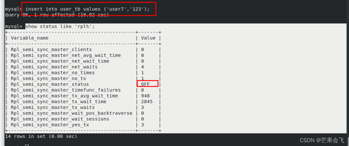 --> insert into user_tb values ('user7','123'); #会等待10秒,此时是异步