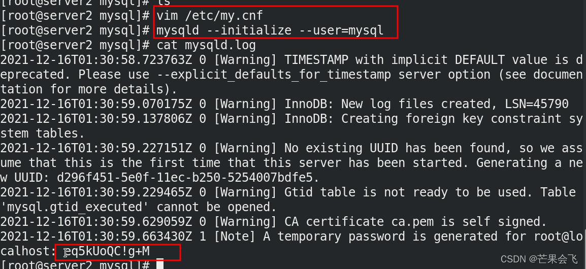 mysqld --initialize --user=mysql #重新初始化的时候要把/data/mysql/目录下的东西清空