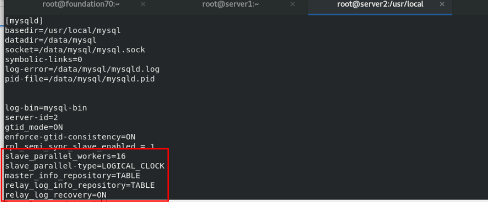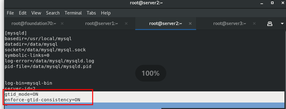 -->change master to master_host='172.25.70.1', master_user='repl', master_password='westos', master_auto_position=1; #使用gtid