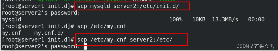 scp /etc/init.d/mysqld server2:/etc/init.d/