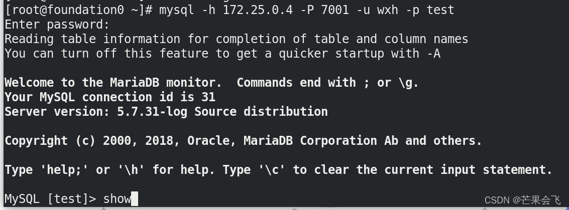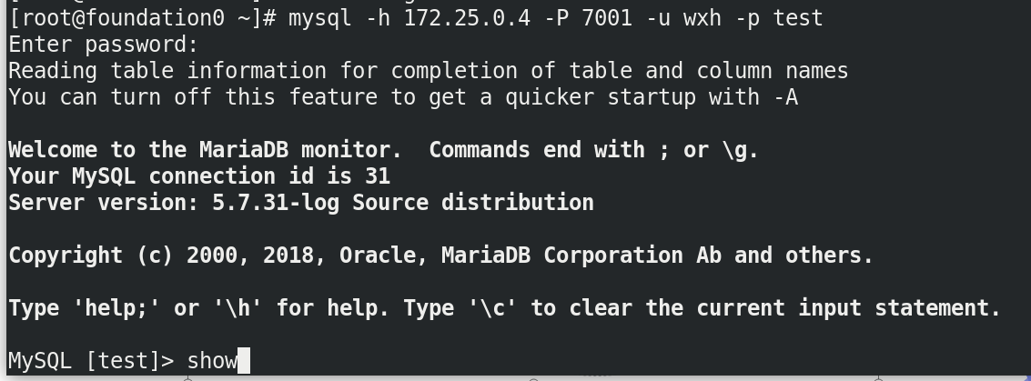 mysql -h 172.25.11.4 -P 7001 -u dmq -p test #7001是只读