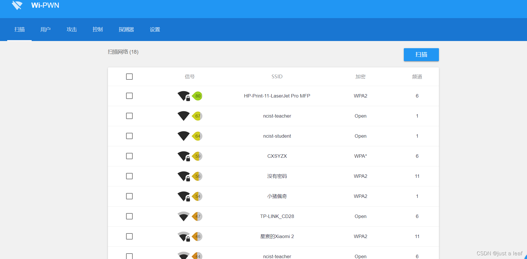 选择攻击方式然后就可以选取网络进行攻击干扰了