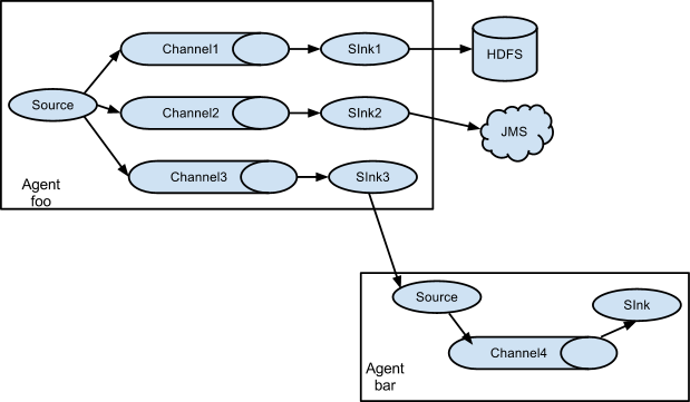 这个数据流是将不同类型的数据流写入到不同的Channel当中,然后不通的Channel对应的Sink将收集到的数据消息(Event)输出到不同的目的地。