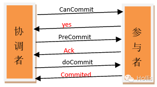 2、在第一阶段和第二阶段中插入一个准备阶段。保证了在最后提交阶段之前各参与节点的状态是一致的。