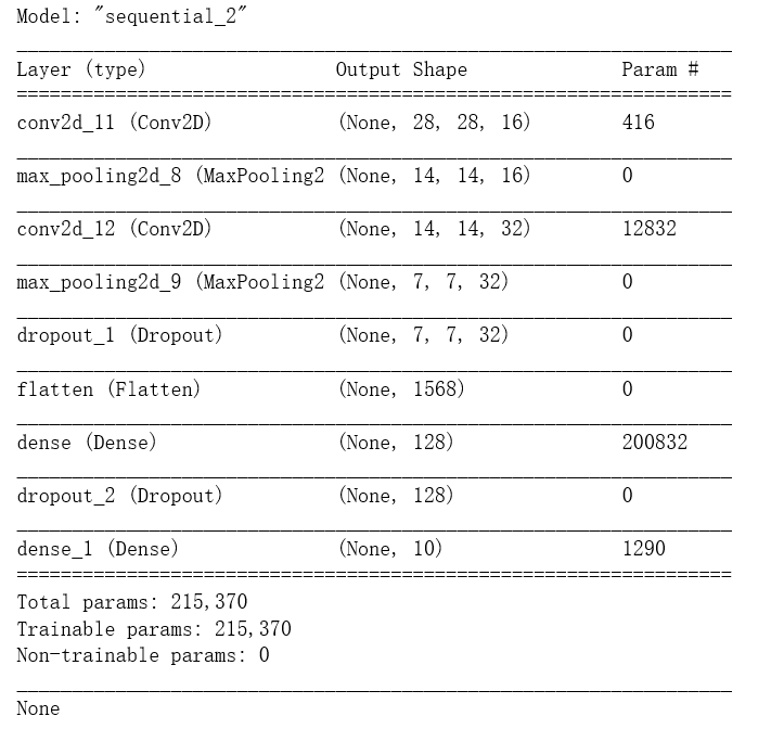 model.add(layers.Dense(10,activation='softmax'))3.模型概要查看