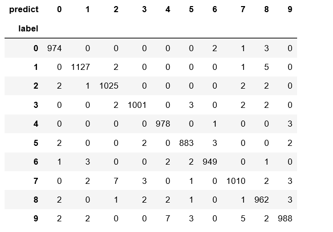 2.调用pandas的混淆矩阵查看结果。