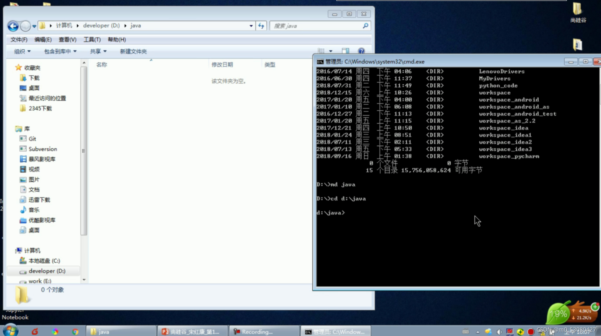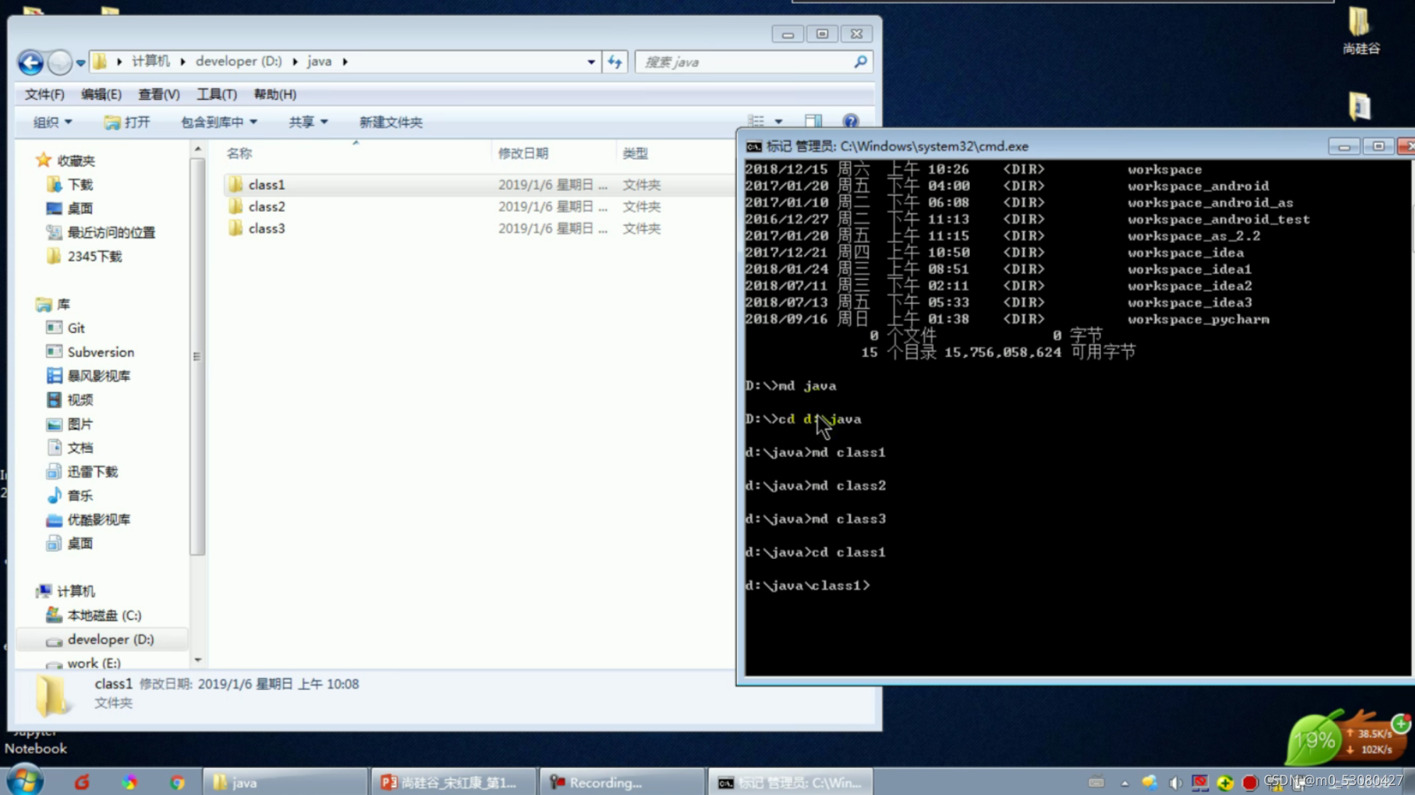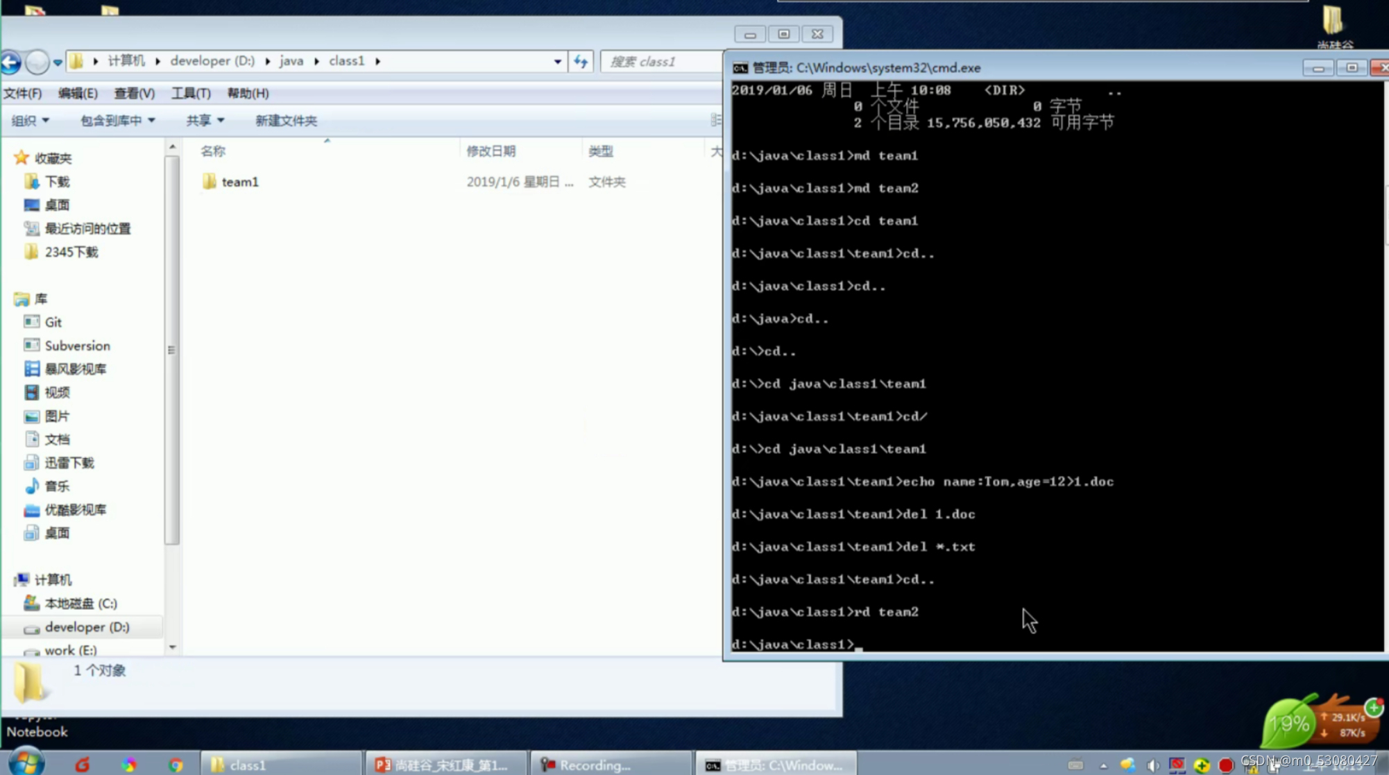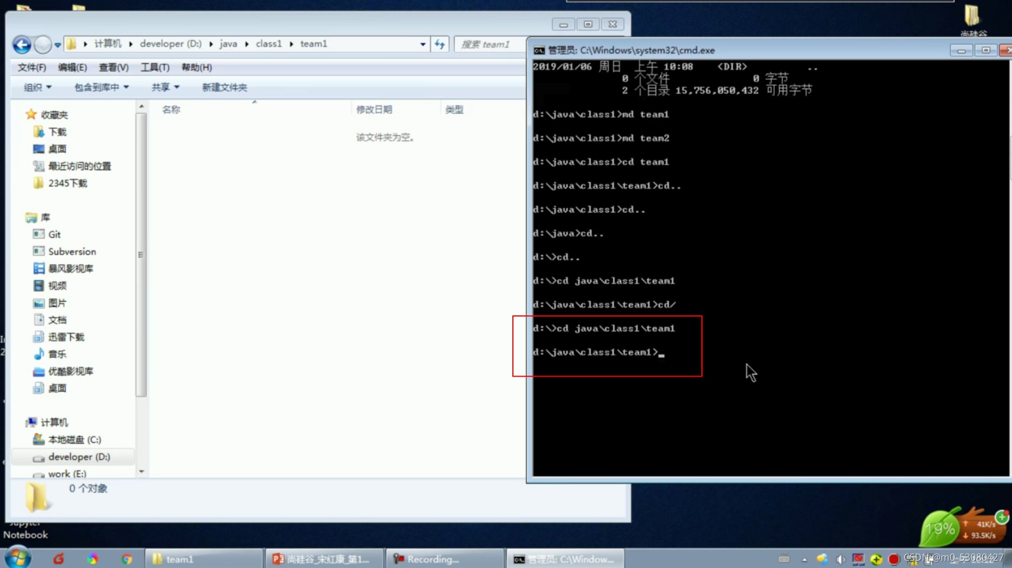 想进入team1文件夹,可以打cd java\class1\team1 一步到位