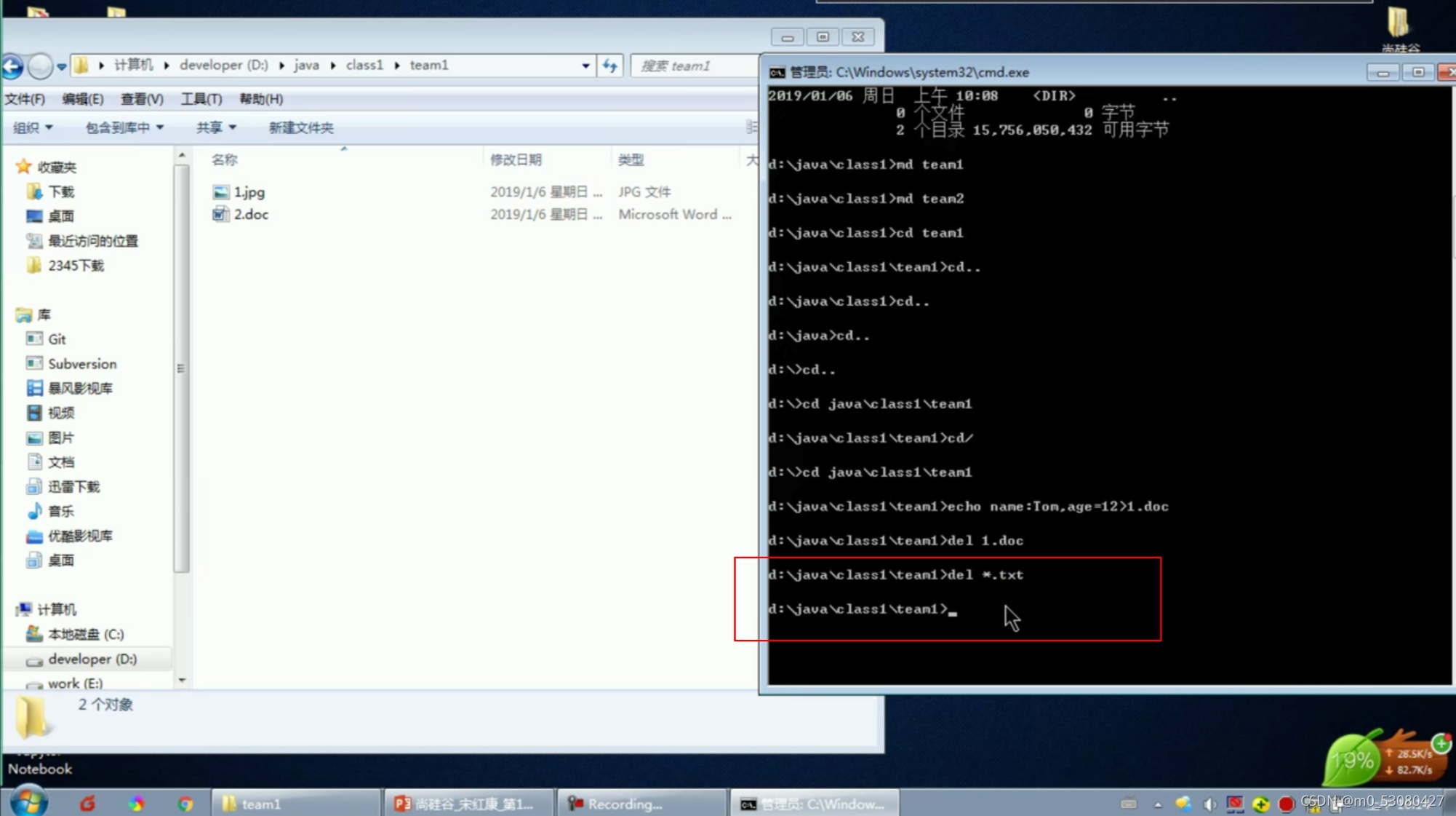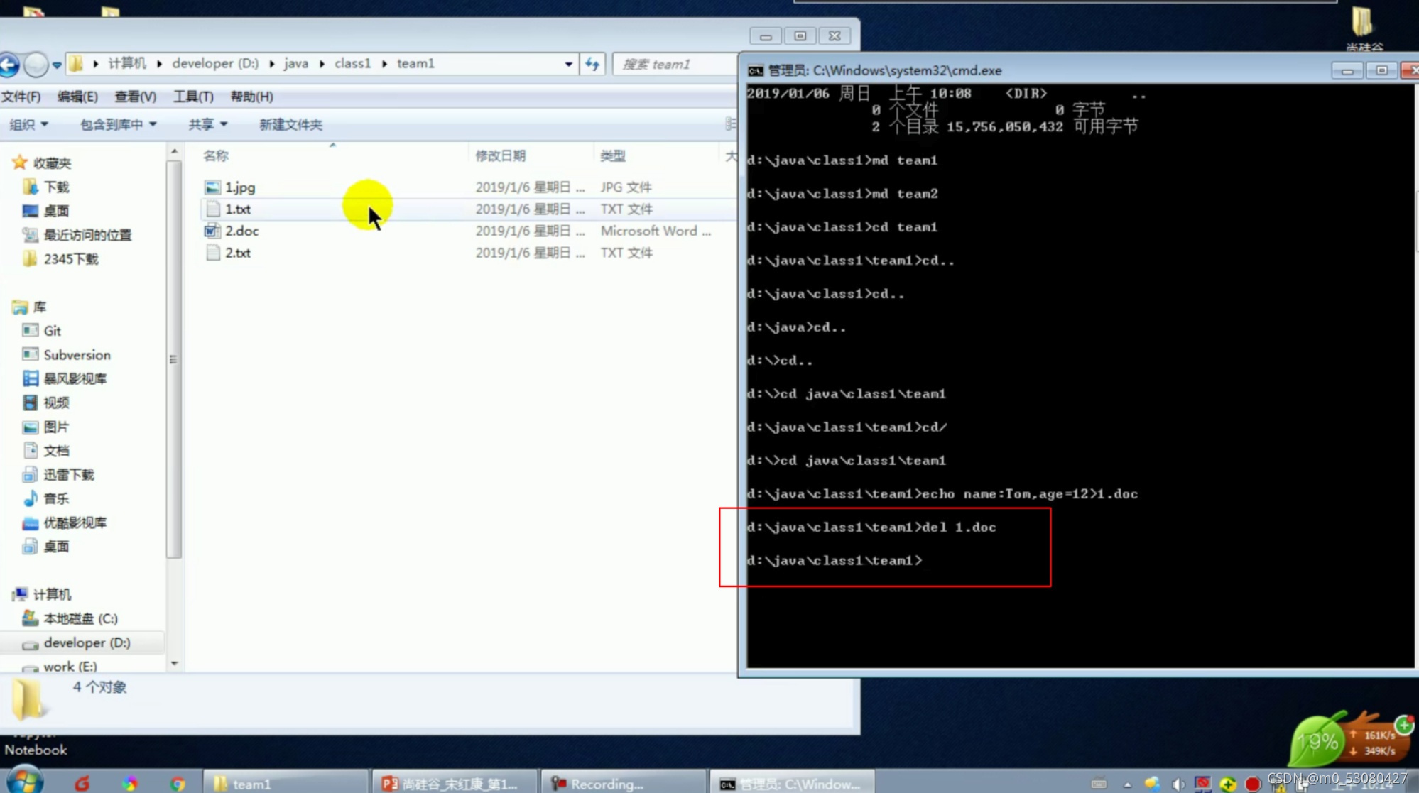 删除文件操作,输入del 1.doc 再按回车即可。del全称是delete
