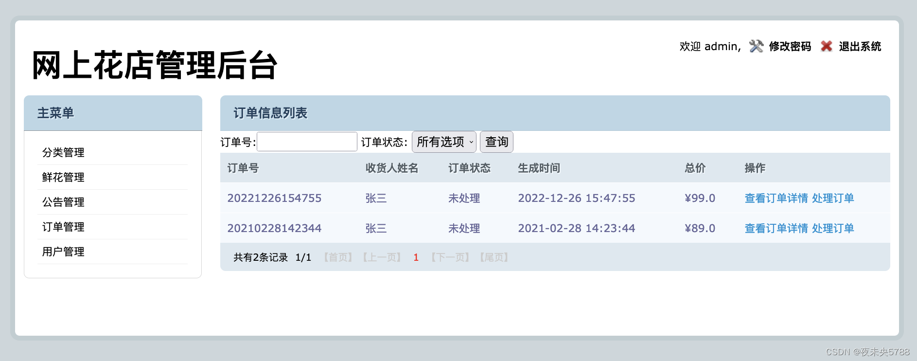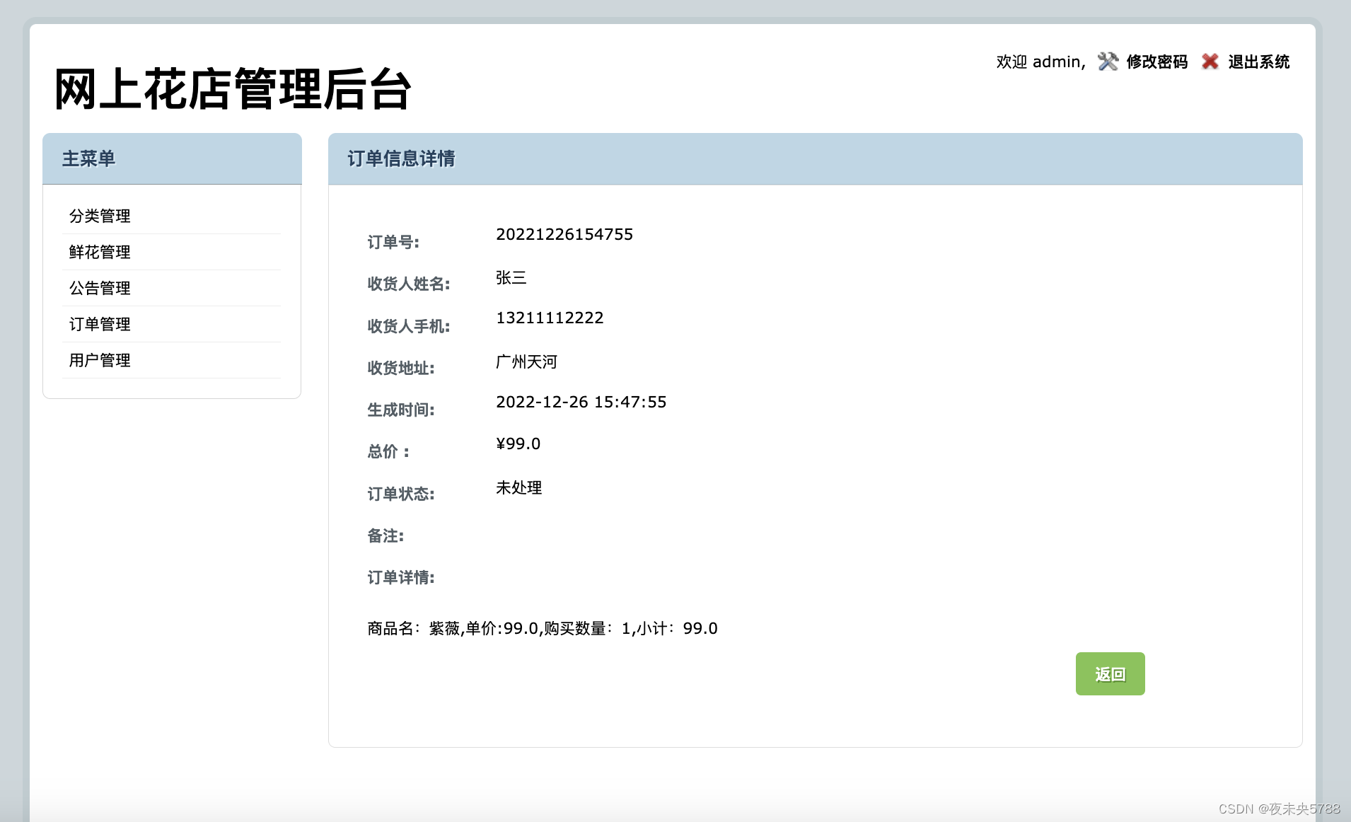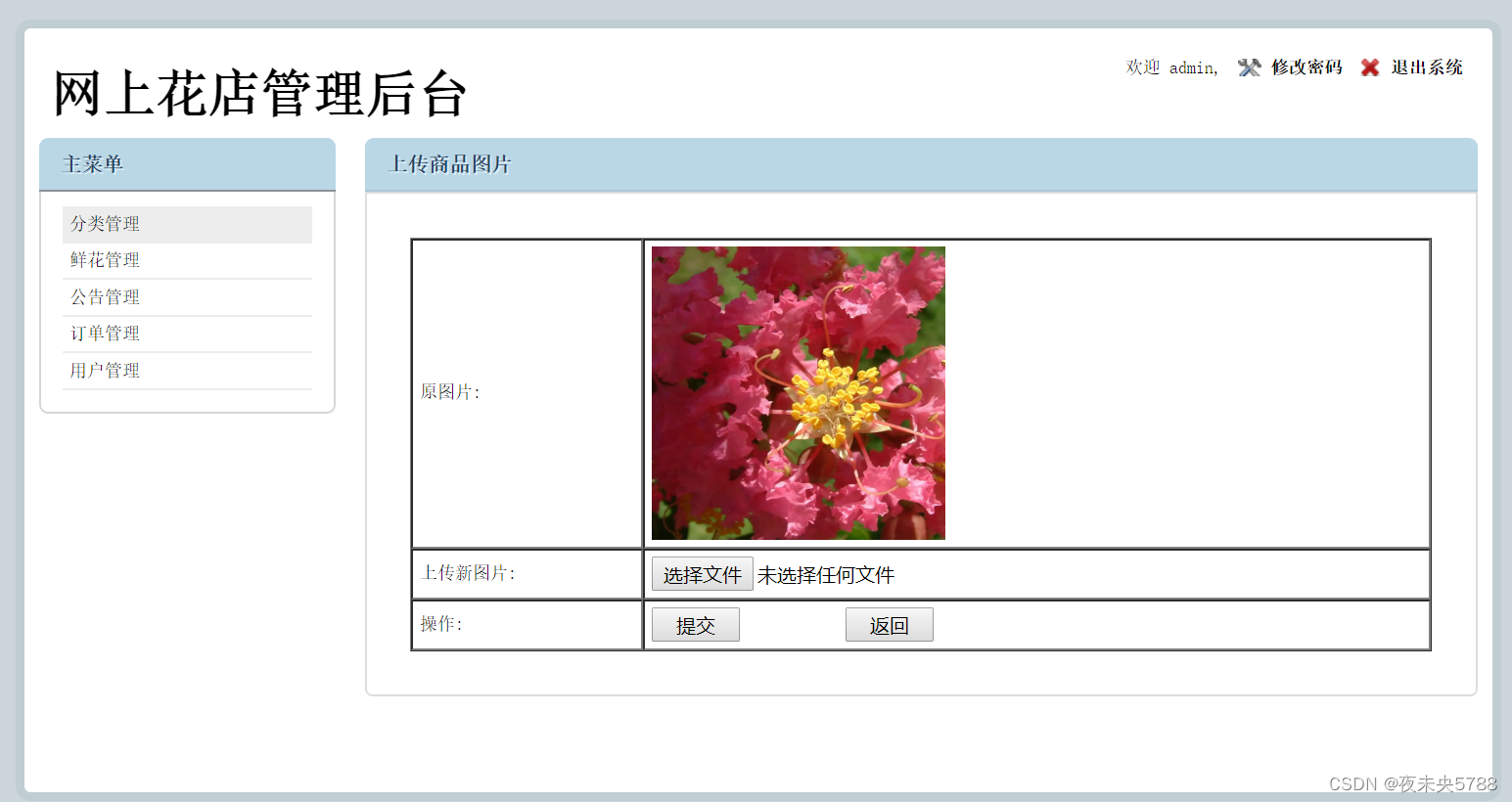 后台地址:http://localhost:8080/flowerstore/manage/login.jsp