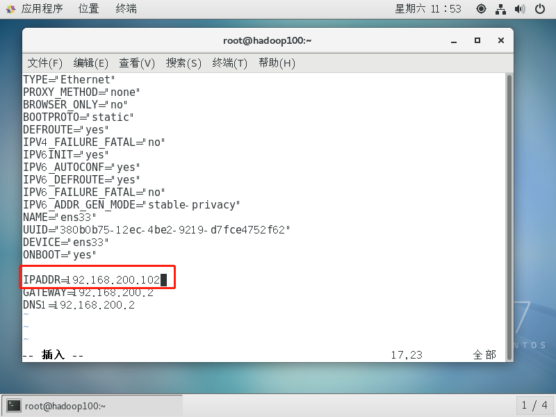 vim /etc/sysconfig/network-scripts/ifcfg-ens33