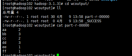 bin/hadoop jar share/hadoop/mapreduce/hadoop-mapreduce-examples-3.1.3.jar wordcount wcinput/ ./wcoutput