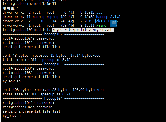 scp -r root@hadoop102:/opt/module/* root@hadoop104:/opt/module/