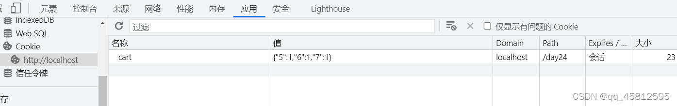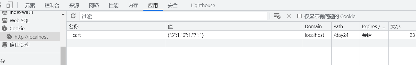 cookie中查看数据 第一个值为商品id 第二个值为数量
