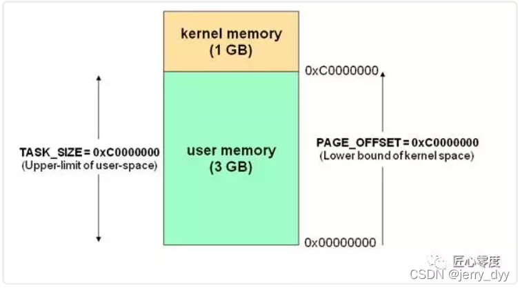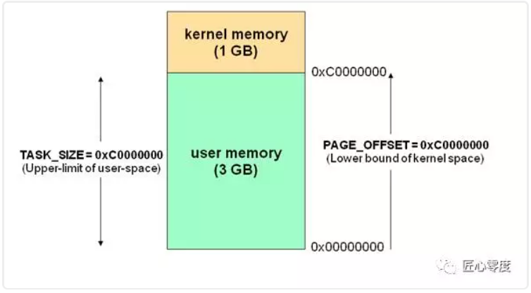 我们知道现在操作系统都是采用虚拟存储器,那么对32位操作系统而言,它的寻址空间(虚拟存储空间)为4G(2的32次方)。操作系统的核心是内核,独立于普通的应用程序,可以访问受保护的内存空间,也有访问底层硬件设备的所有权限。为了保证用户进程不能直接操作内核,保证内核的安全,操作系统将虚拟空间划分为两部分,一部分为内核空间,一部分为用户空间。针对linux操作系统而言,将最高的1G字节(从虚拟地址0xC0000000到0xFFFFFFFF),供内核使用,称为内核空间,而将较低的3G字节(从虚拟地址0x00000000到0xBFFFFFFF),供各个进程使用,称为用户空间。每个进程可以通过系统调用进入内核,因此,Linux内核由系统内的所有进程共享。于是,从具体进程的角度来看,每个进程可以拥有4G字节的虚拟空间。