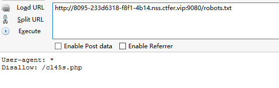 很明显看到这是robots.txt,访问robots.txt,可以看到cl45s.php