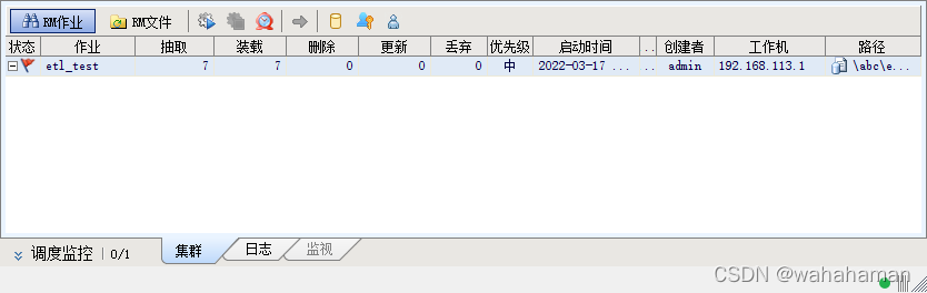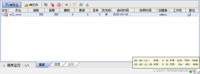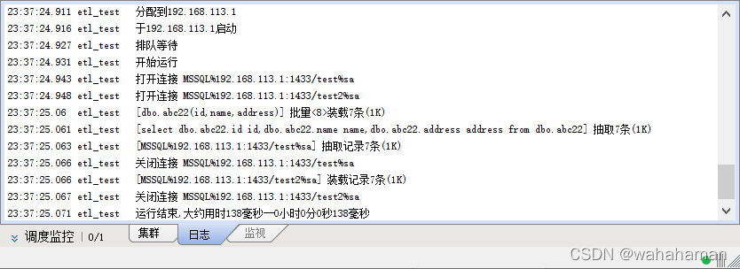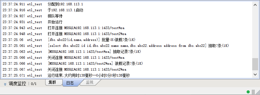 选择日志窗口查看任务执行情况,显示任务在执行过程迁移到了其它服务器执行。