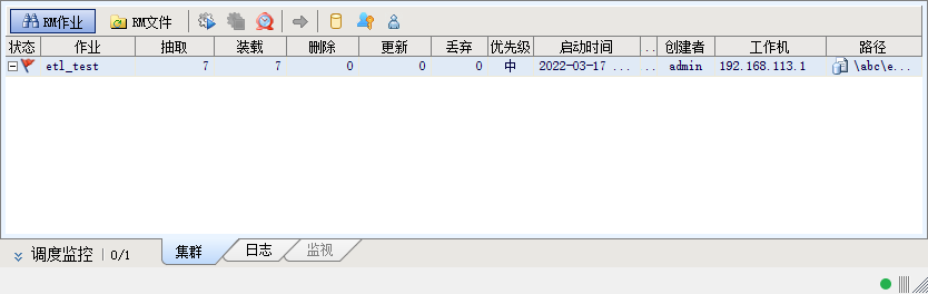 鼠标选中将要启动的作业,选择工具栏[启动]按钮,作业在分配到某一作业服务器后开始运行。