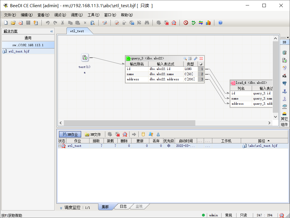 选择BeeDI客户端集群窗口,切换RM文件视图,选择指定方案下将要调度的作业。