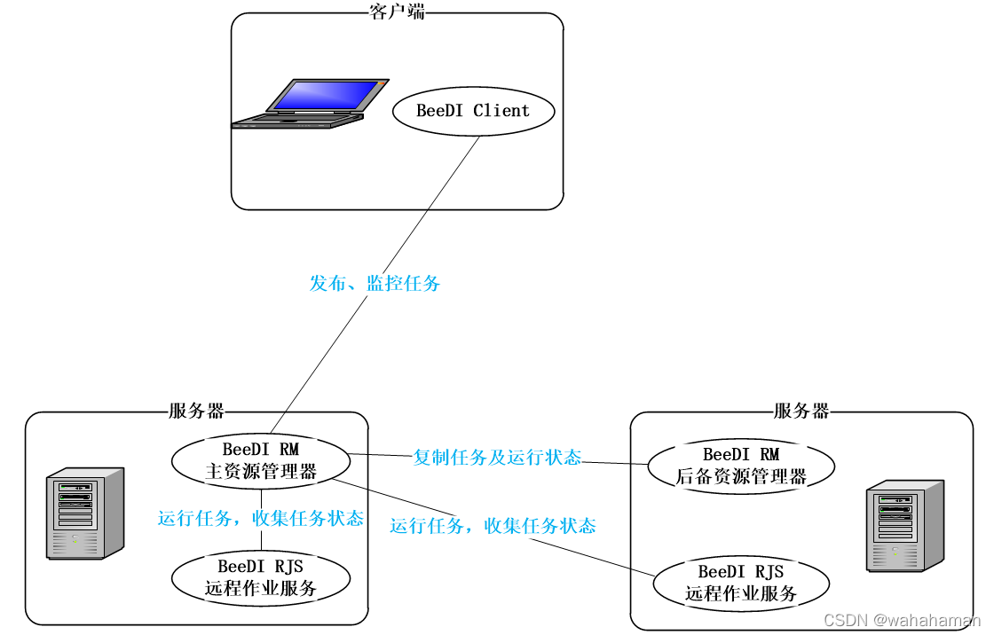 准备2台服务器分别安装BeeDI主资源管理器(主RM)和后备资源管理器(后备 RM)。