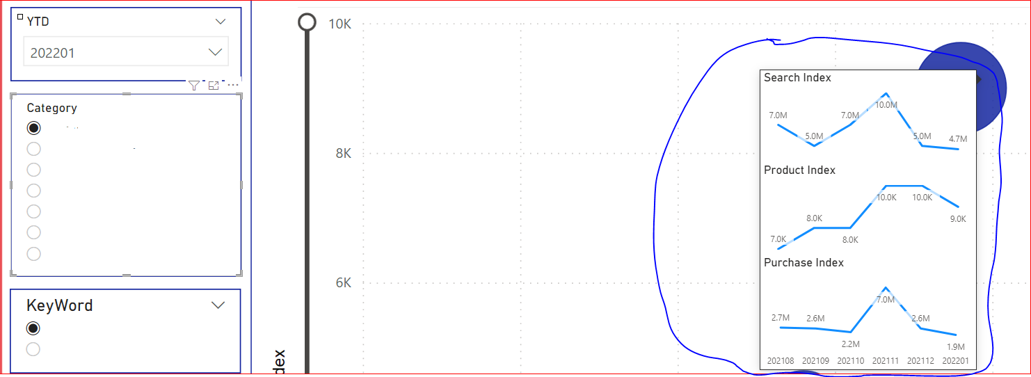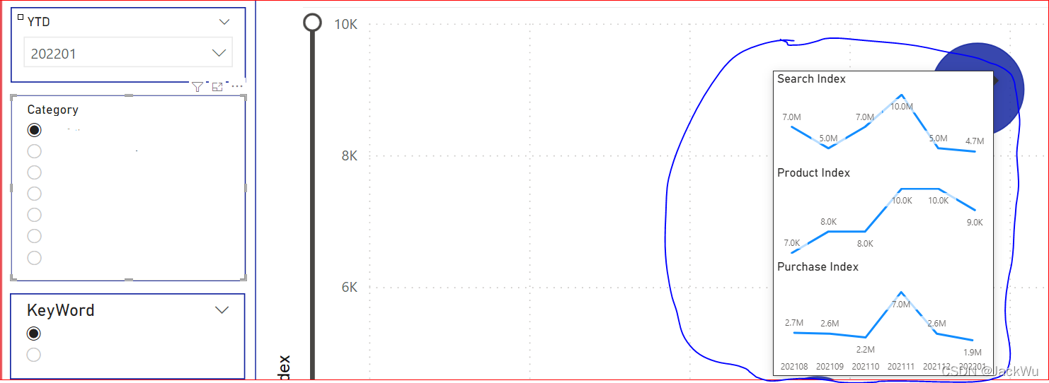 4、在Tooltips的上用【DimTipsDate】创建月份显示数据图;