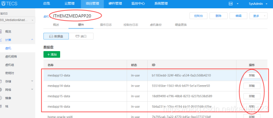 - 对于共享的在资源组中的盘,需要在app20虚机上,在tecs层面重新卸载然后在挂载。